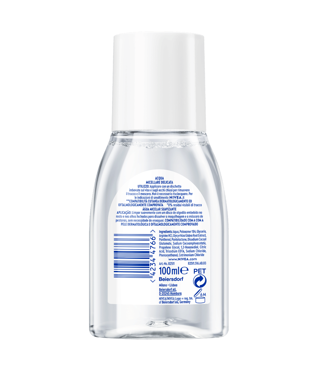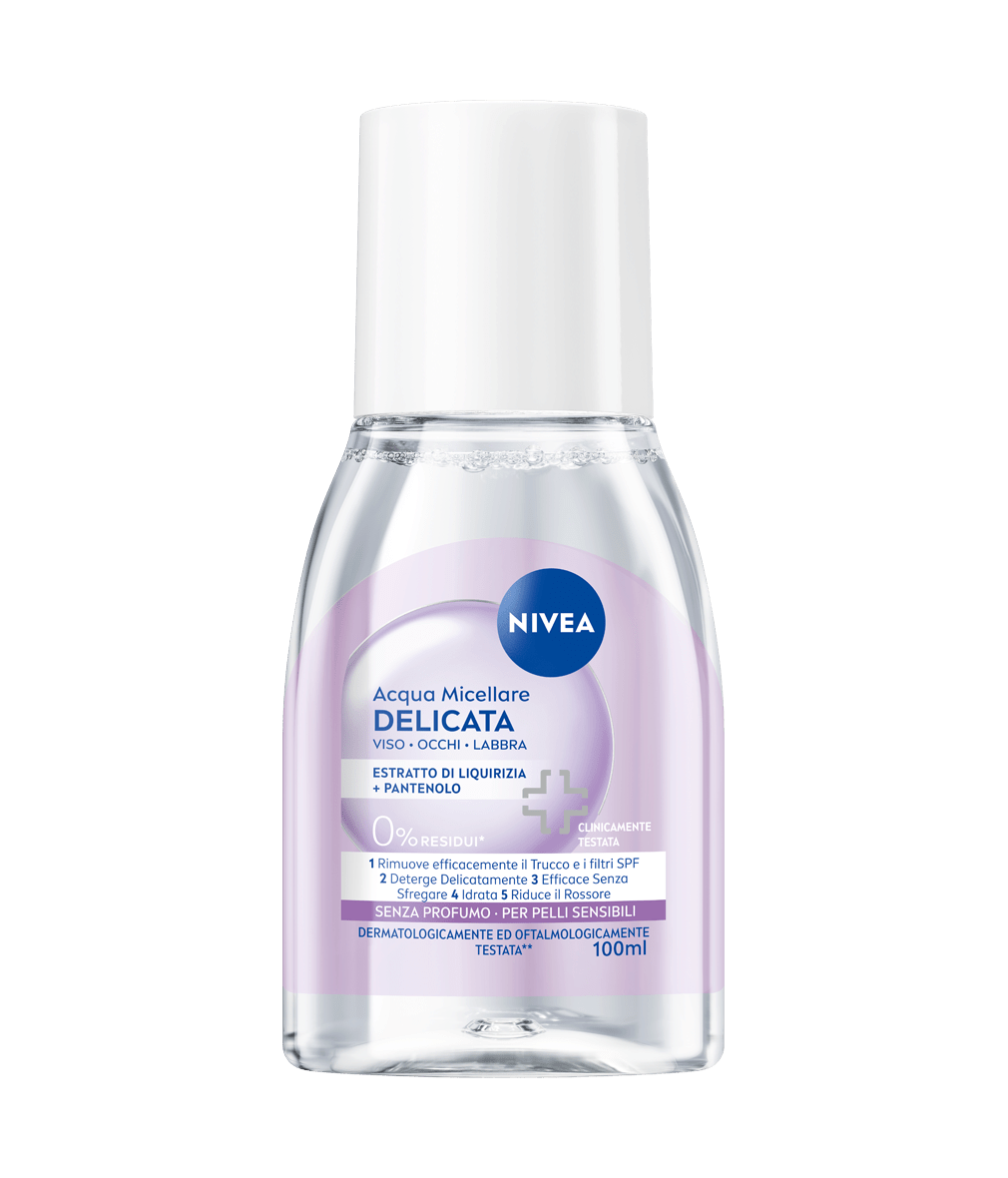 Limpe e suavize a sua pele com a Água Micelar Suavizante de NIVEA. Com Extrato de Alcaçuz, Pantenol e Complexo de Aminoácidos, remove suavemente maquilhagem, impurezas, sujidade e FP, enquanto reduz a vermelhidão e a secura, sendo perfeita para pele sensível.