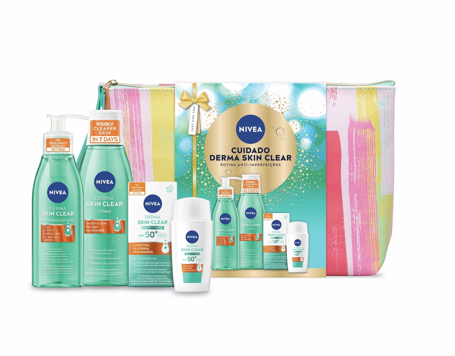 Pele com imperfeições? Este kit é a solução perfeita para oferecer, com a rotina 3 passos para uma pele visivelmente renovada em 7 dias.