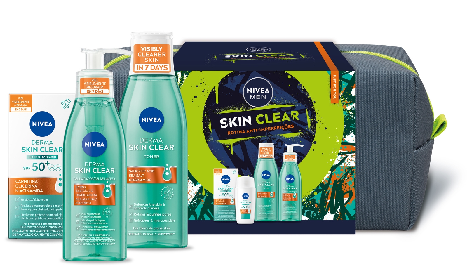 Pele com imperfeições? Este kit é a solução perfeita para oferecer, com a rotina 3 passos para uma pele visivelmente renovada em 7 dias.