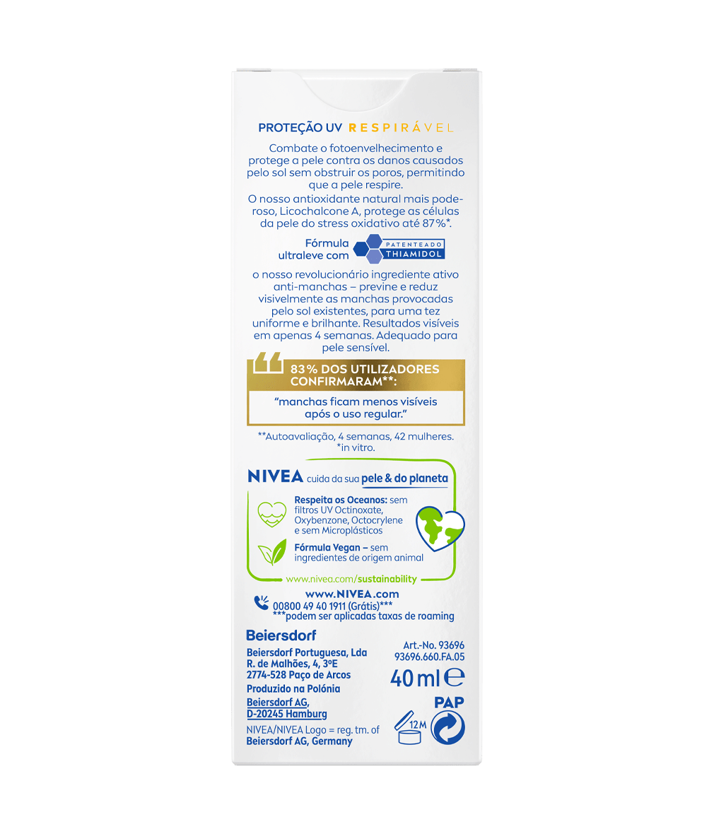 - NIVEA CUIDA DA SUA PELE E DO PLANETA – Fórmula vegan, sem filtros UV Octinoxate, Oxybenzone, Octocrylene e sem microplásticos