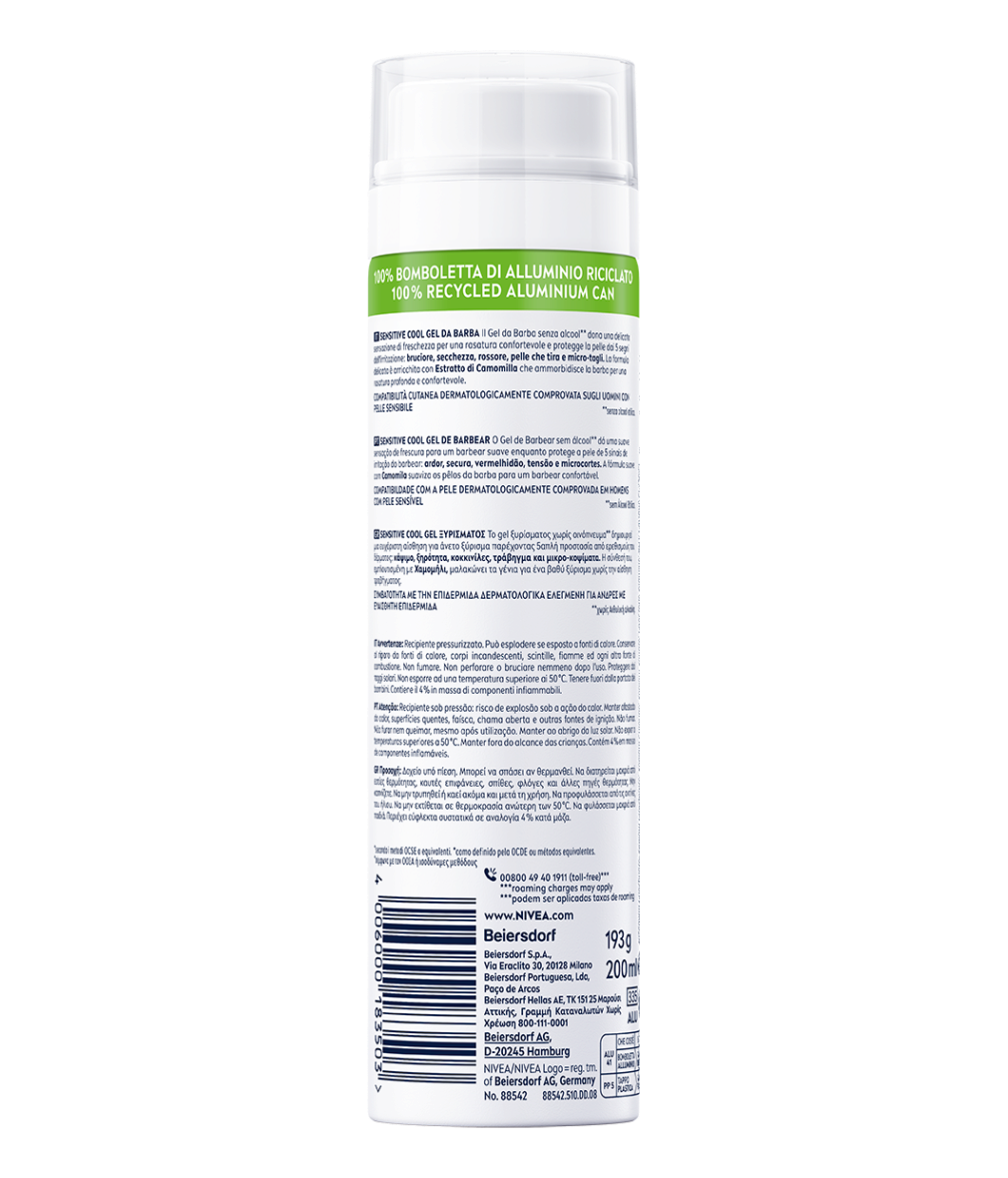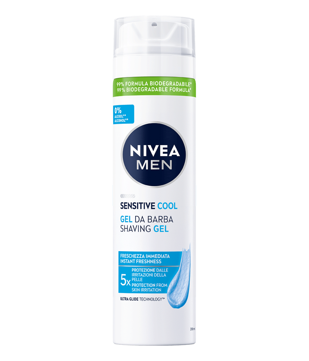 Desenvolvida especialmente a pensar na pele sensível, a sua fórmula suaviza o pelo da barba com a Tecnologia Ultra Glide, enquanto proporciona uma sensação de frescura – para um barbear confortável e extremamente suave, sem provocar irritações da pele: NIVEA MEN Gel de Barbear Sensitive Cool.