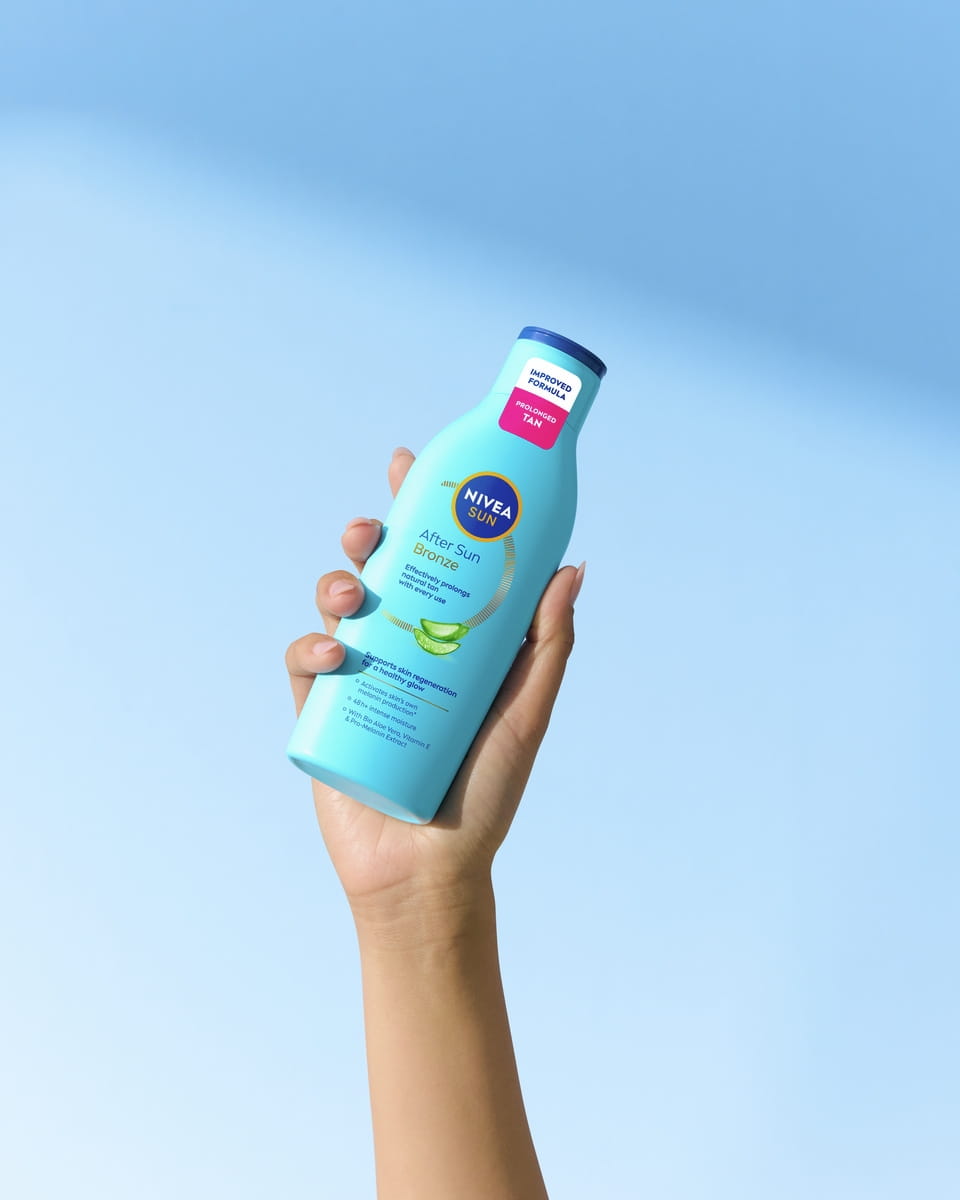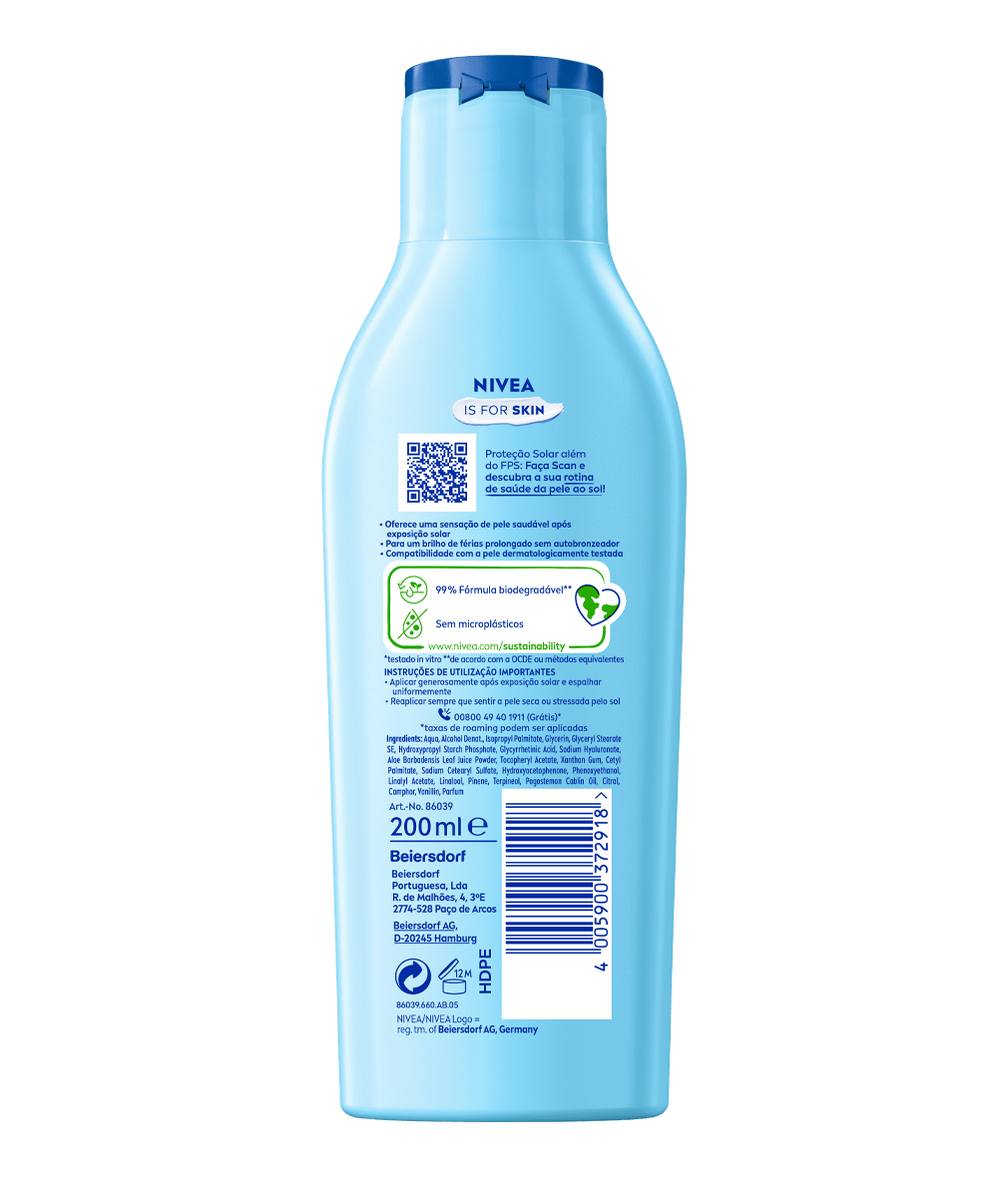 NIVEA SUN Loção After Sun Bronze, com uma fórmula hidratante com extracto de pro-melanina, que evita a descamação da pele e prolonga o bronzeado.