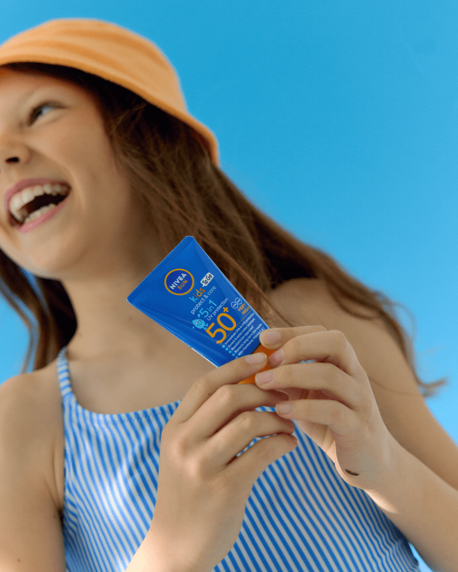 Proteção duradoura para praia, piscina e desporto. 3x mais resistente à água que o protetor solar comum resistente à água: NIVEA SUN Loção Kids Ultra Protect & Play FP50+