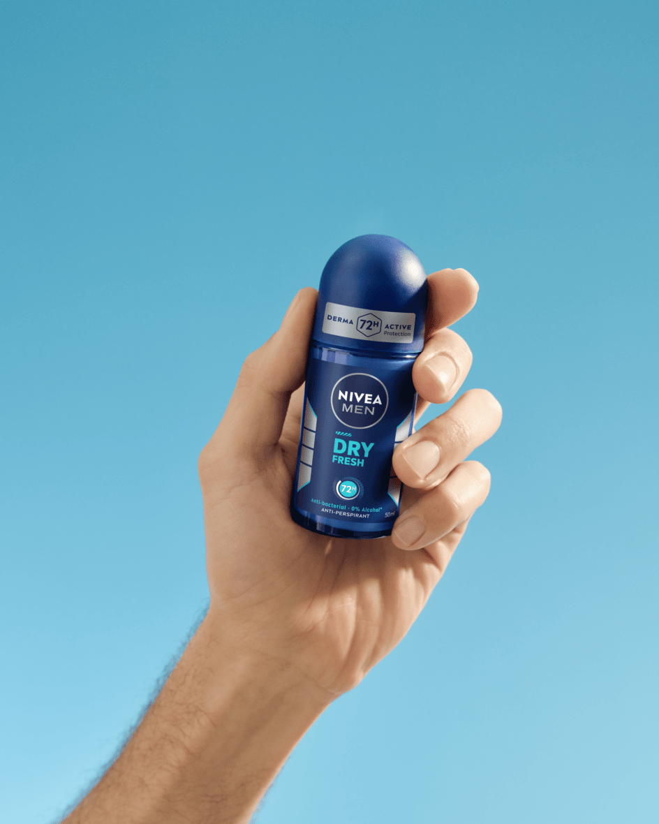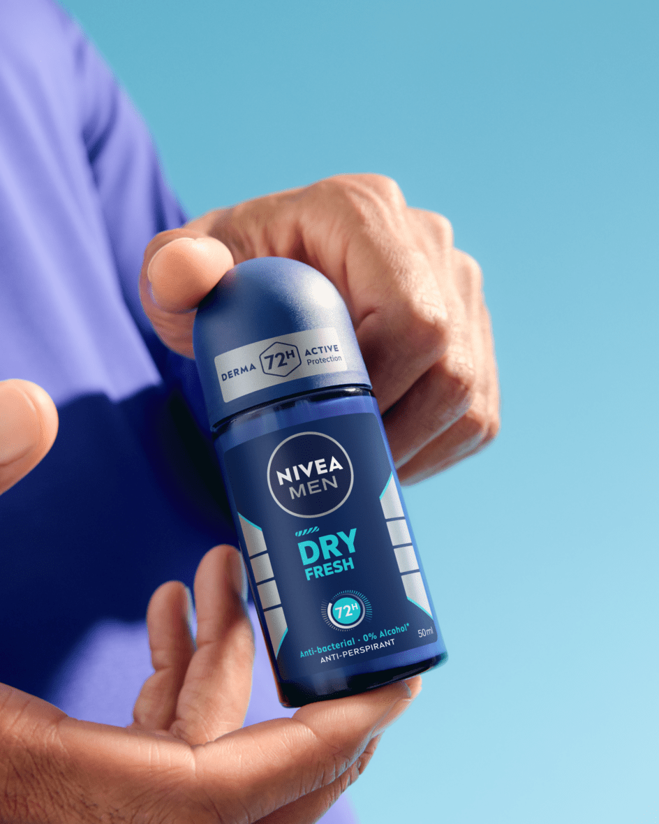Fórmula com 2 ativos que formam uma barreira contra as bactérias para 72h de proteção antitranspirante eficaz que cuida da sua pele. Fórmula com Proteção Derma 72H Active: NIVEA MEN Dry Fresh Roll-On.