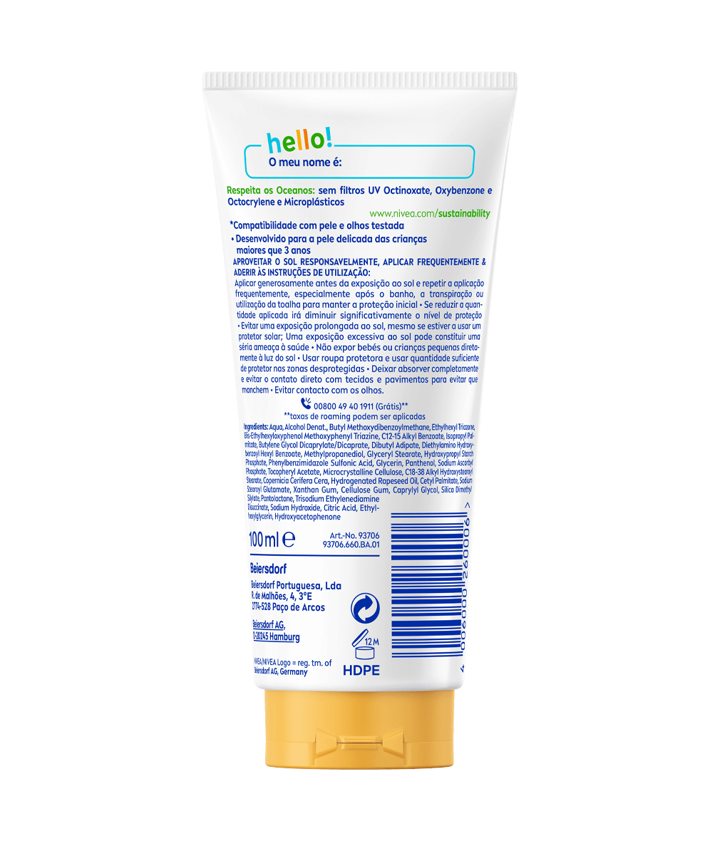 - Desenvolvido para a pele sensível das crianças – suave, sem perfume e não pegajoso