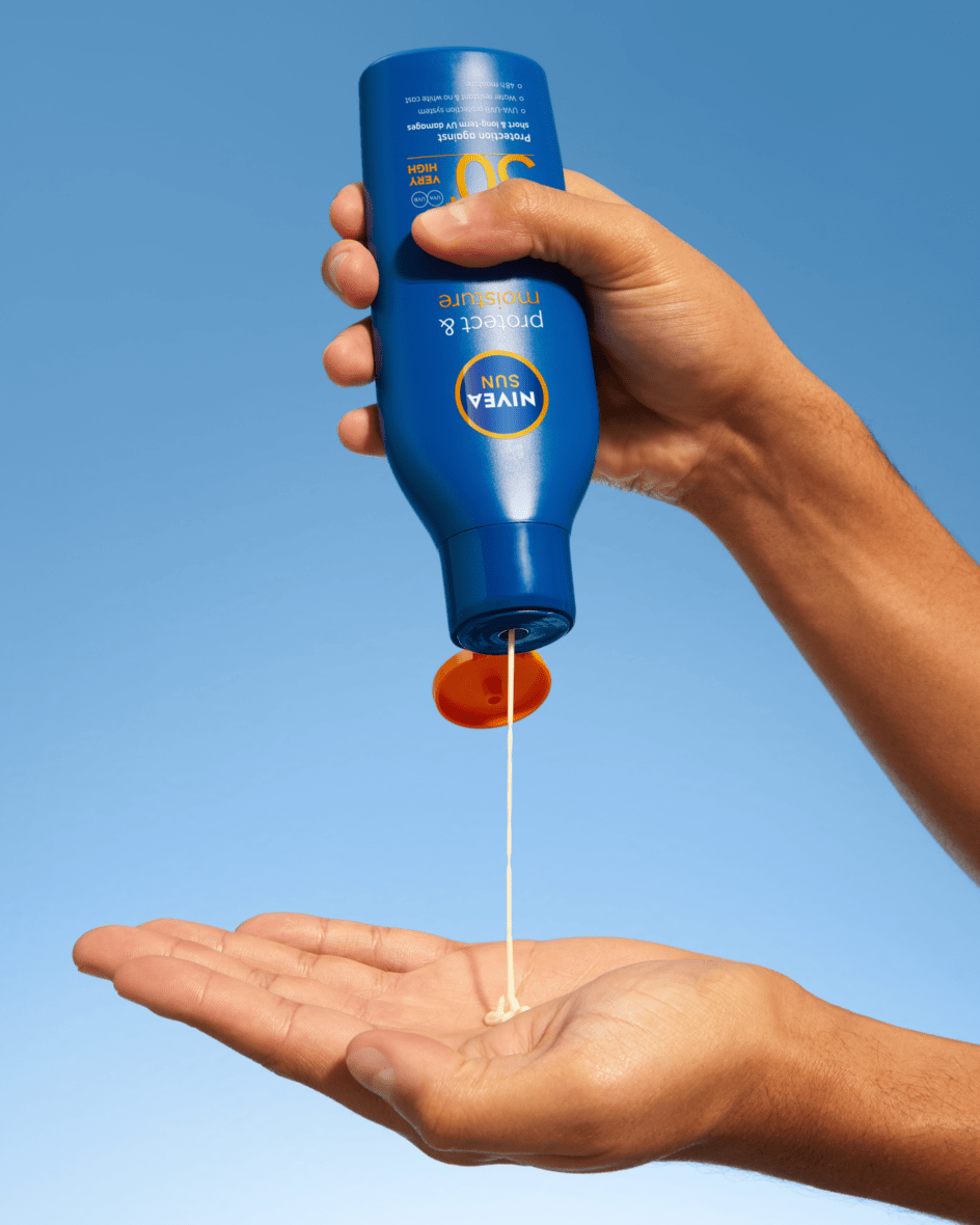 Proteção confiável contra os danos UV de curto e longo prazo com a nova fórmula CITRACELL-PROTECT™ de rápida absorção: NIVEA SUN Protect & Moisture FP50+ 200ml.