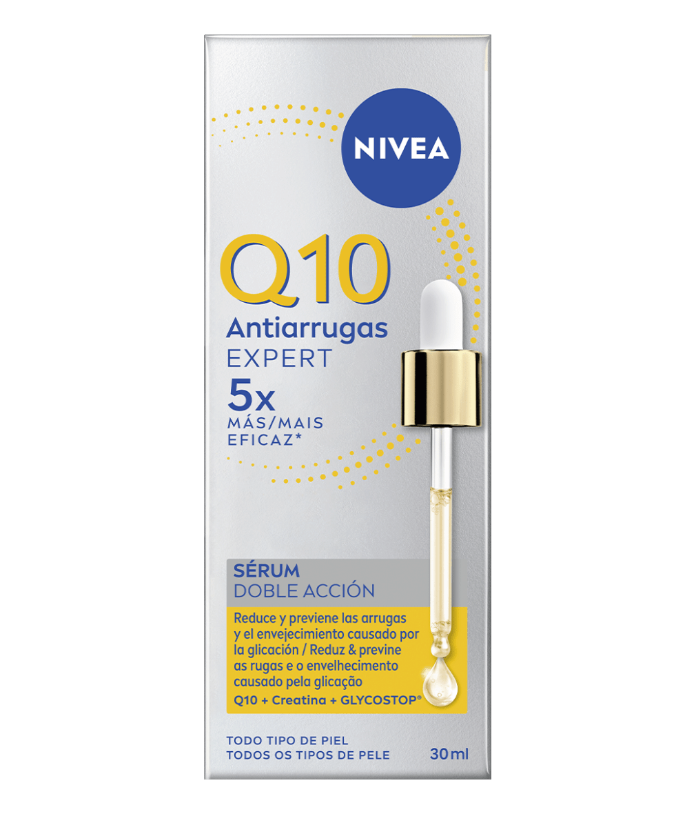 O Q10 Antirrugas Expert Sérum Dupla Ação com Tecnologia Anti-Glicação, potenciado por Q10 puro e GLYCOSTOP, reduz até as rugas mais profundas e previne novas rugas causadas pela glicação.