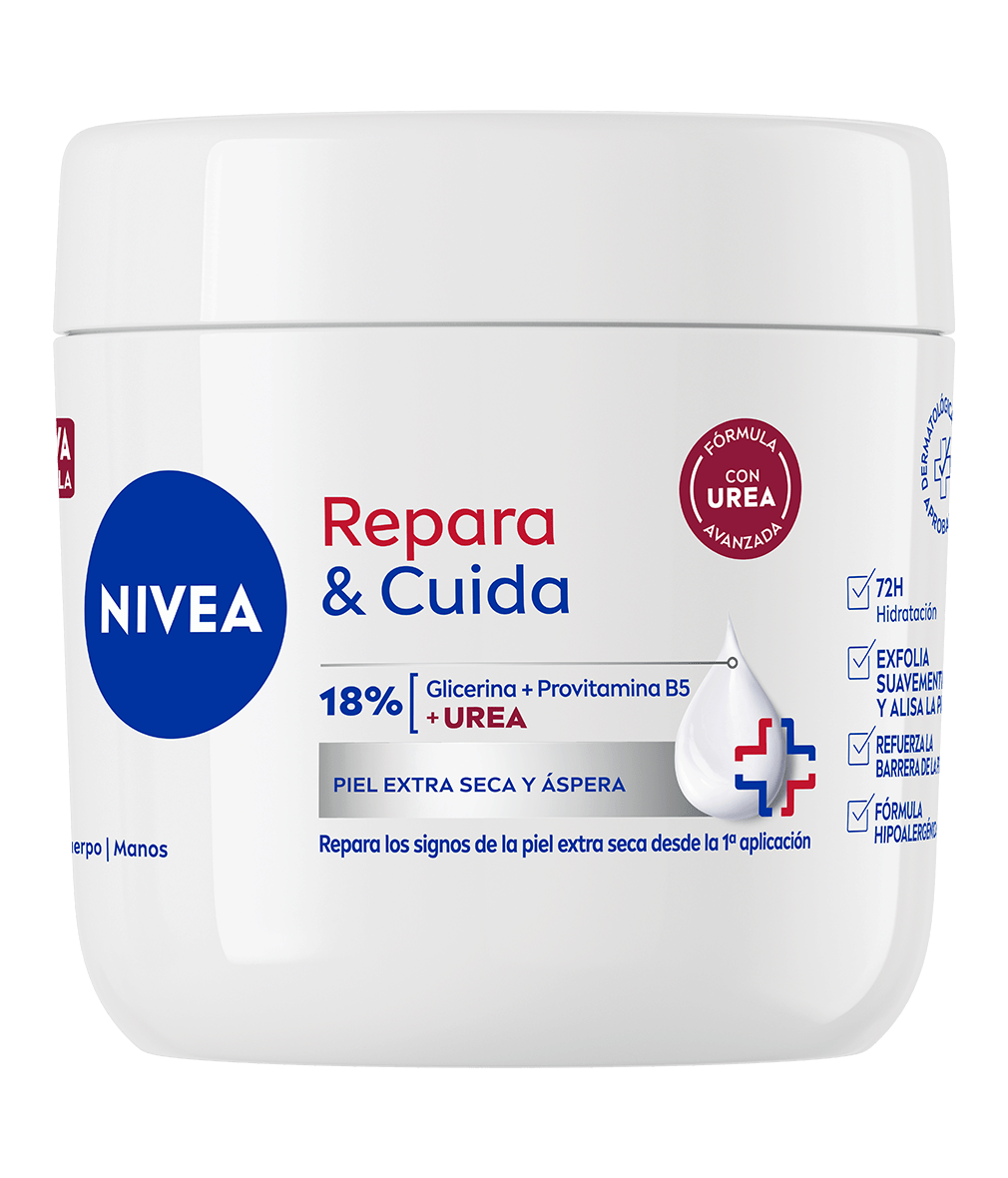NIVEA Repara & Cuida Creme Reparação Avançada repara a pele extra seca desde a primeira aplicação. Hidrata profundamente durante 72 horas e fortalece a barreira da pele, ao mesmo tempo que esfolia suavemente para uma pele suave e macia. Hipoalergénico, não oleoso e de rápida absorção, é seguro para crianças com mais de 3 anos.